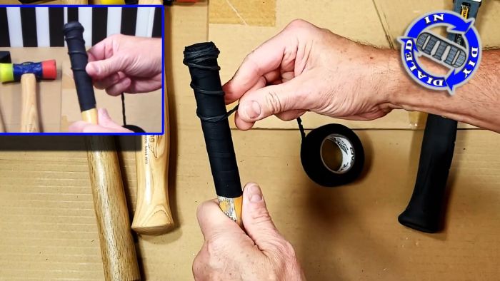 Использовать инструмент со скользкой рукоятью небезопасно. Особенно это касается топоров и молотков. Доработать скользкую рукоять для надежного хвата совсем не сложно, достаточно просто намотать на нее изоленту хитрым способом.