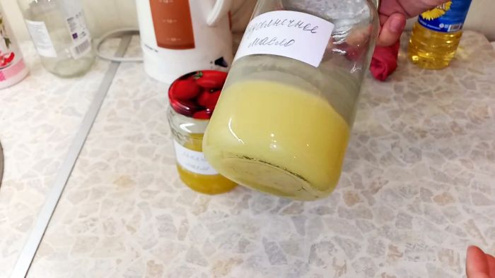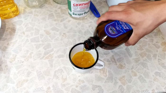 Самодельное масло дает легкий глянец за счет канифоли.