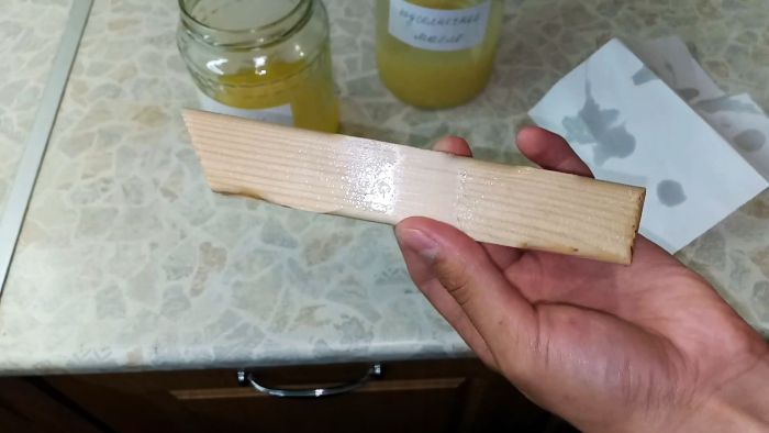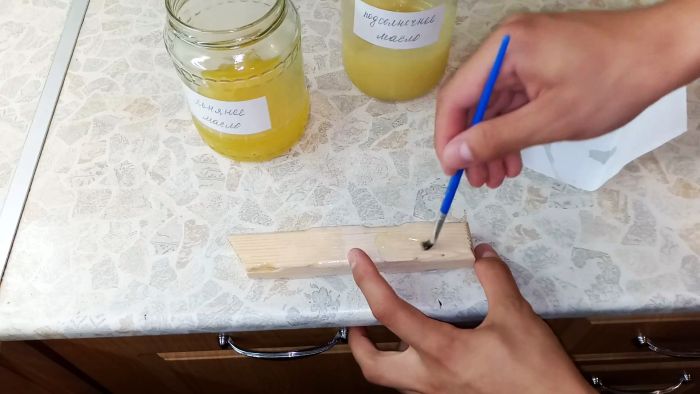Наносится такая пропитка ветошью или бинтом. Состав на льняном масле остается жидким, а на подсолнечном густеет.