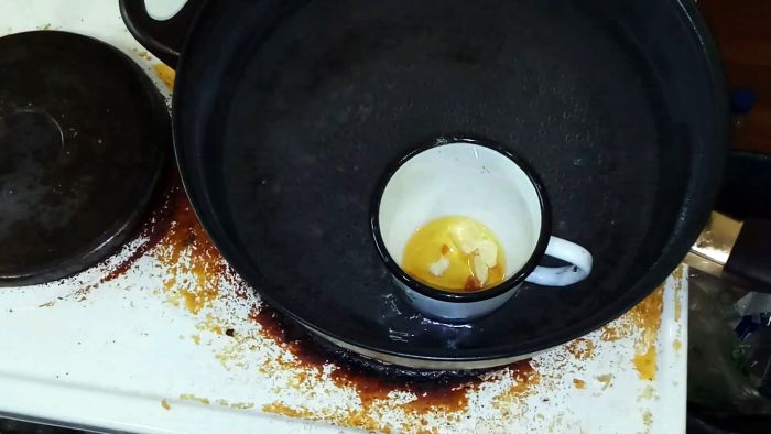 Емкость нужно накрыть, так как тот начнет источать едкий запах. Через минуту состав снимается с водяной бани и охлаждается.