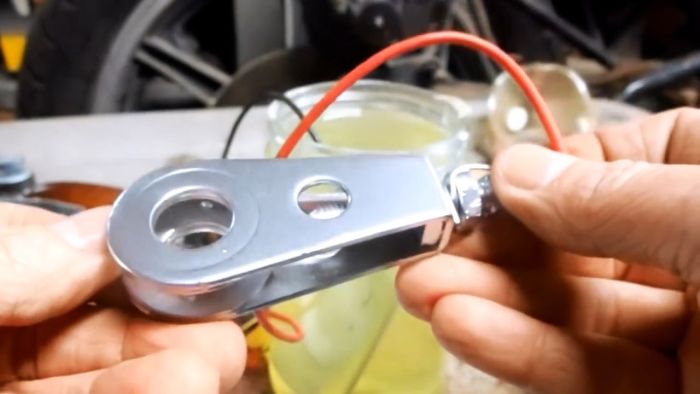 Суть процесса в том, что изделие будет помещено в ванну с электролитом вместе с цинковым электродом. Они будут подключены к батарейке, в результате чего частицы цинка с электрода перенесутся на этот предмет. Для этого нужно только подключить к изделию «–», а к электроду «+».