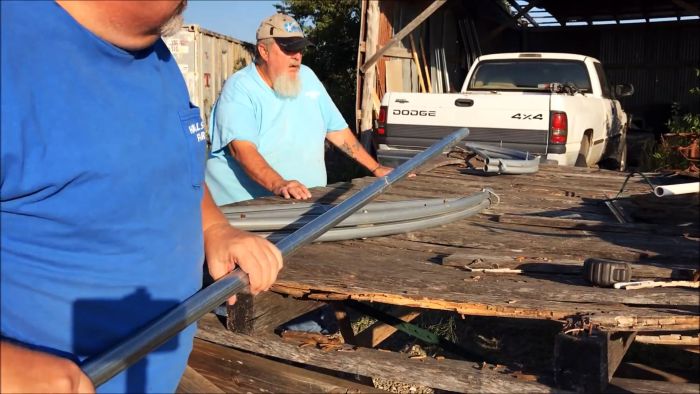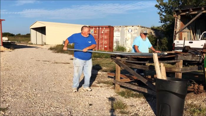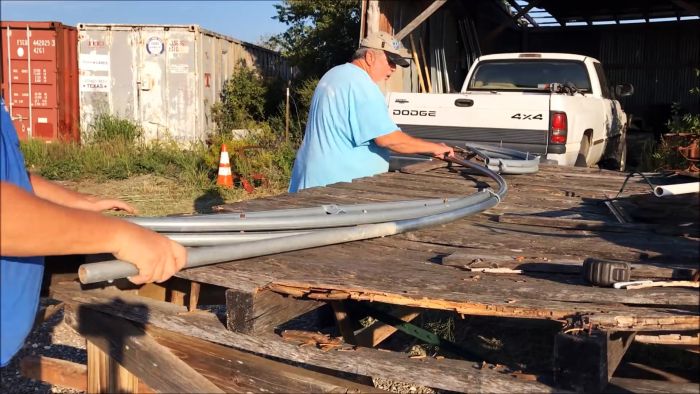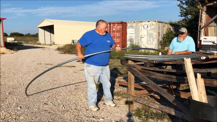 Далее она проталкивается дальше, пока за скобу не выйдет вся изогнутая часть, и гнется снова. Для облегчения в нее можно вставить лом или тонкую трубу.