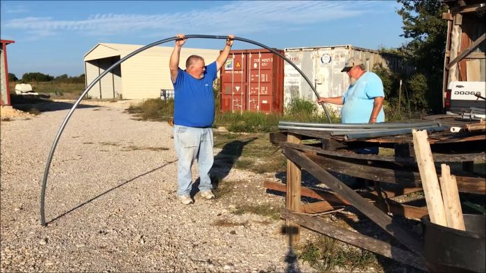 При изготовлении теплицы важно, чтобы каждая арка из трубы имела одинаковый радиус изгиба. Если в наличии имеется трубогиб, то готовить одинаковые детали не проблема. При его отсутствии добиться требуемого уровня точности можно только собрав для этого несложный шаблон.