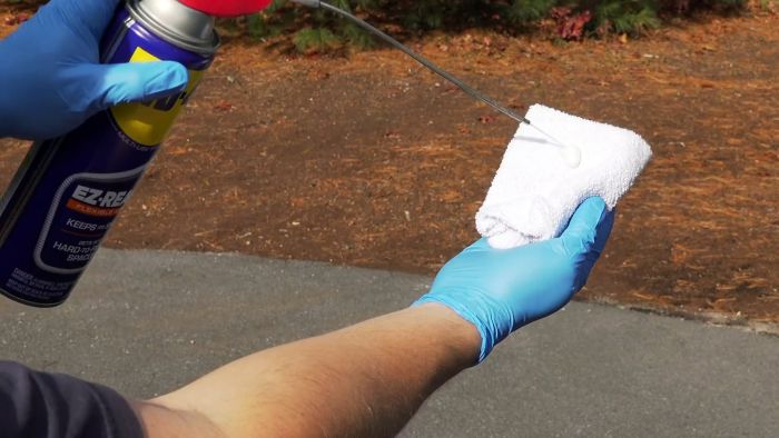 На ветошь или салфетку из микрофибры наносится WD-40.
