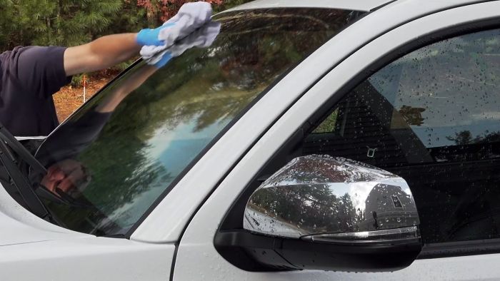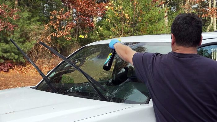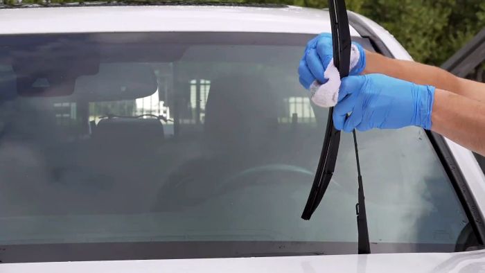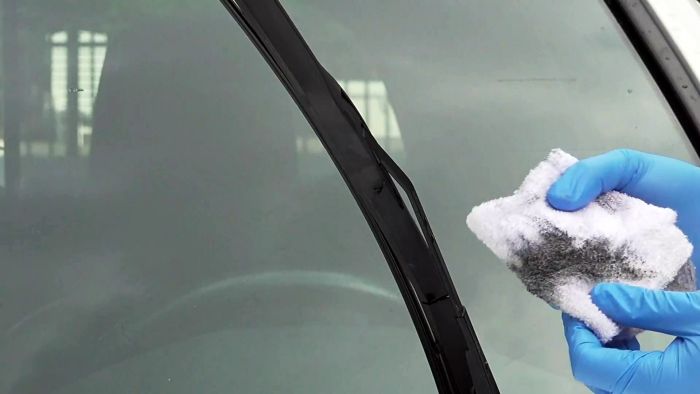 Затем резиновые щетки дворников протираются этим средством без демонтажа.