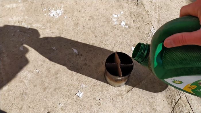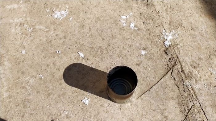 С одной стороны на ней нужно сделать надрезы, чтобы загнуть часть металла внутрь. Тот послужит дном для установки банки.