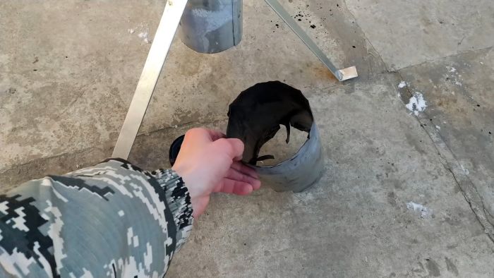Низ печки делается из отрезка оцинкованной водосточной трубы высотой 30 см.
