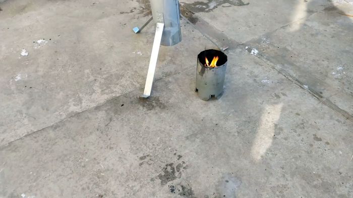 Полученные при этом просветы обеспечат приток воздуха. При розжиге нужно будет сначала вставить банку в нижнюю ступень, и после этого зажигать фитиль.