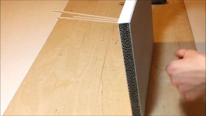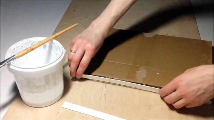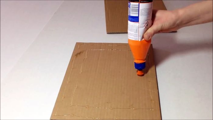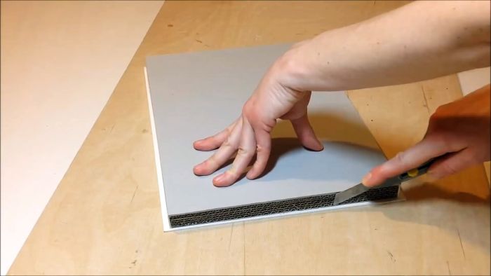 На заготовку полки из гофрокартона сверху приклеивается обычный картон.