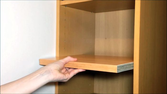 Если в вашем шкафу не хватает полок, не спешите заказывать их у мебельщиков. Даже если у вас совершенно нет никакого инструмента, вы сможете сделать их своими руками из обычного картона. Всего-то потребуется канцелярский нож и угольник.