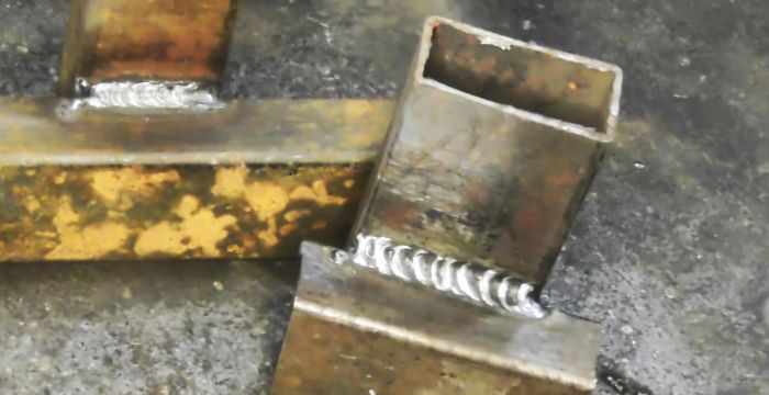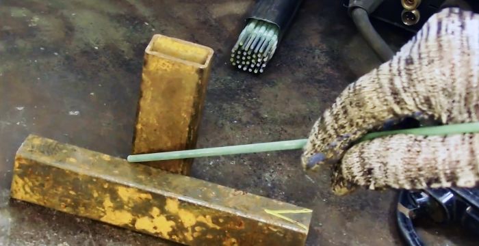 Для сварки профильных труб обычным инвертором, лучше использовать электроды 3 мм. Если толщина стенок металла всего 2 мм, то ток выставляется 85А. Торец сварочного электрода приставляется к свариваемым трубам под 45 градусов.