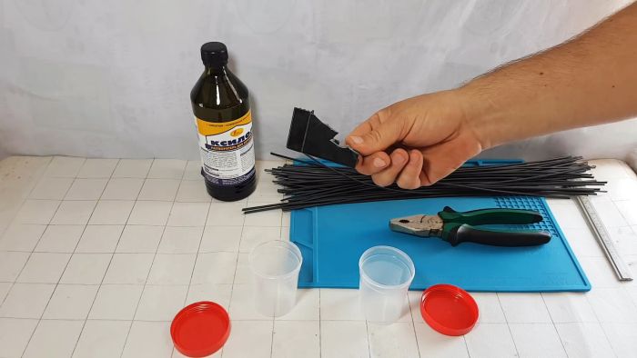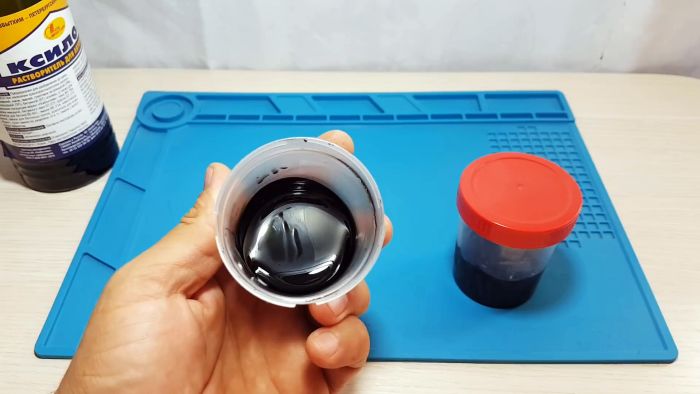 В теории просто необходимо смешать ксилол с твердой, ломанной пластмассовой и на выходе получить жидкий пластик. Но тут, как вы наверное уже догадались, не все так просто. Дело в том, что ксилол растворяет не все марки пластика, поэтому тут нужно экспериментировать.