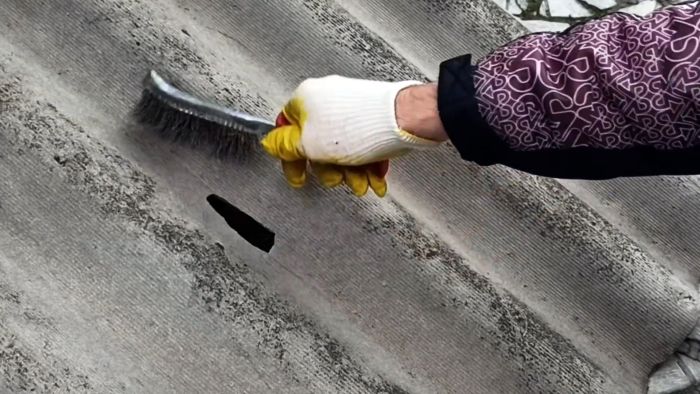 Отверстия на кровле зачищаются щеткой по металлу.