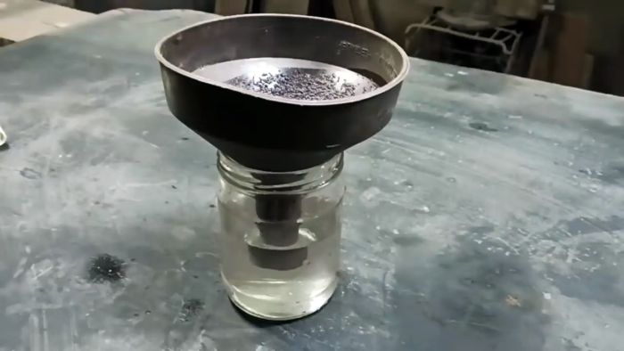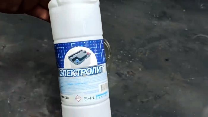Куски карбюратора или гранулы засыпаются в банку с небольшим количеством электролита для АКБ.