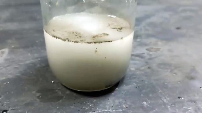Спустя примерно сутки цинк растворится, про что будет свидетельствовать прекращение выделения пузырьков. Полученный мутный раствор нужно профильтровать через воронку с ватой.