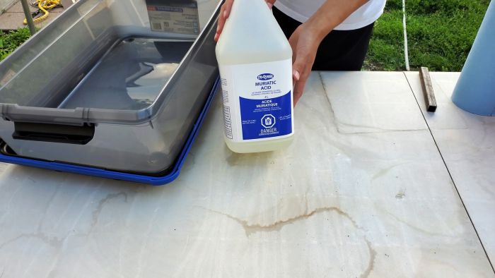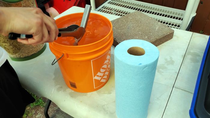 Далее деталь вынимается и окунается в чистую воду, чтобы смыть остатки кислоты. Затем ее нужно очень хорошо вытереть, чтобы ржавчина не появилась снова. Кислоты сразу же следует накрыть или перелить обратно в канистру, так как она испаряется.