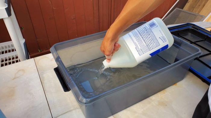 Оптимально проводить работы на свежем воздухе или под мощной вытяжкой, так как выделяемые при этом испарения лучше не вдыхать. Очень хорошо, если емкость имеет крышку.