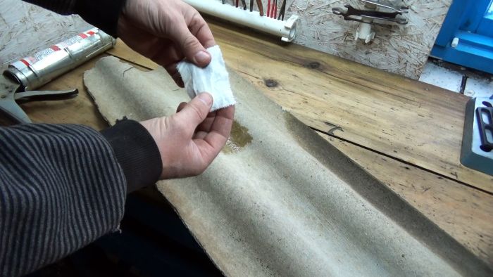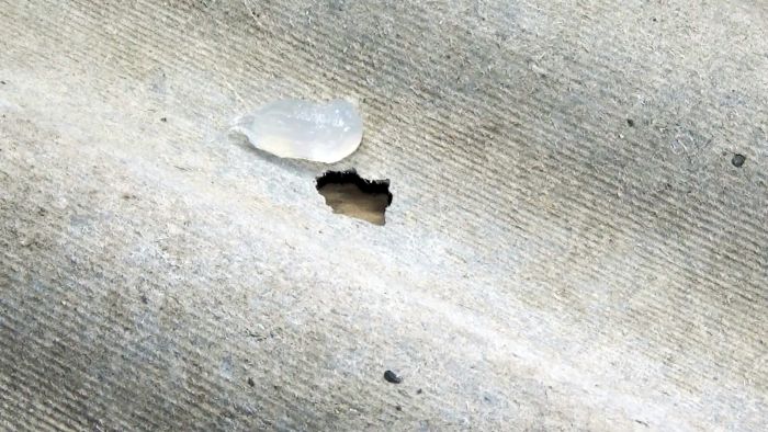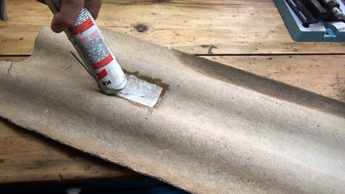 Кровельные материалы, в особенности шифер, часто имеют пробоины от упавших веток или старых гвоздей. Через них на чердак или в утеплитель мансарды затекает вода. Заделывать такие дырки можно очень быстро, и как говорится на века, причем, весьма доступным способом.