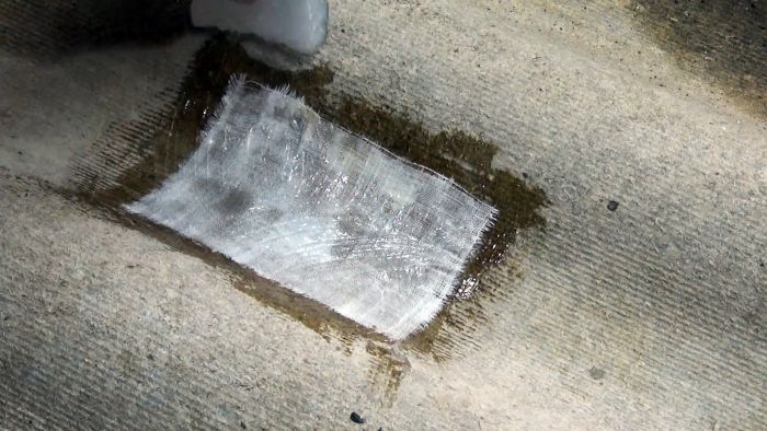 Сверху герметика укладывается лоскут ткани, желательно прочный синтетический. Он приглаживается, чтобы силикон проступил наружу, пропитав волокна.