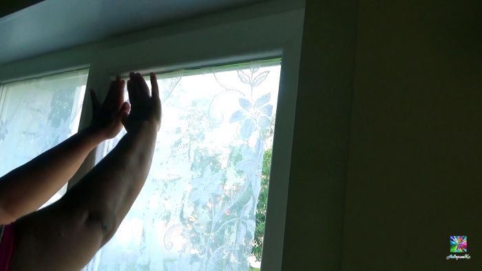 Процесс поклейки тюля на окна