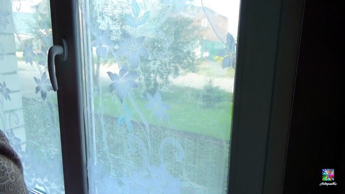 В дальнейшем, при необходимости стирки, тюль нужно будет сбрызнуть водой с опрыскивателя, и через пару минут легко снять. Потом он клеится аналогично. При каждой поклейке важно его хорошо отжимать, так как при излишках крахмала стекла становятся матовыми.