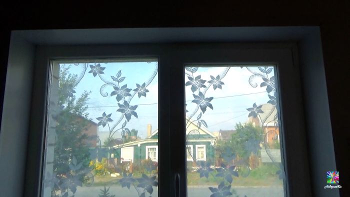 Чтобы прикрыть окна, обычно вешают тюль, однако во многих случаях он мешает, особенно на кухне. Гораздо практичней приклеить его прямо на стекла. Так он не будет свисать, закрывать подоконник, при этом даст необходимый уют и закроет обзор в комнату с улицы.