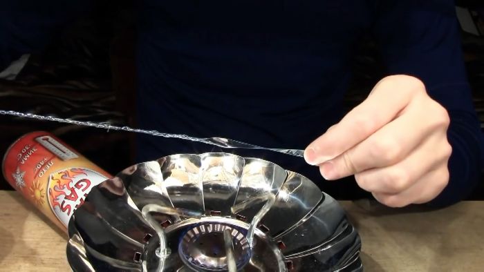 Край ленты закручивается спиралью и прогревается над плитой. Затем она подкручивается и протягивается дальше. Полученная спираль сразу же отводится за пределы зоны нагрева, чтобы пластик чрезмерно не размяк. В результате должна получиться трубка, скрученная виток к витку без зазоров и нахлестов. Так она будет достаточно упругой