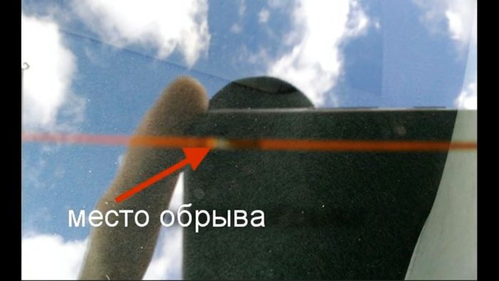 По длине нити в месте разрыва сверху и снизу клеится изолента.