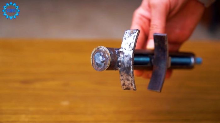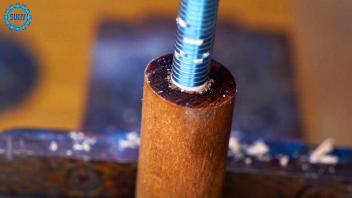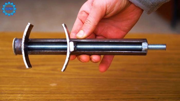 Затем на начало шпильки накручивается ограничительная гайка и деревянная рукоять. На губки инструмента приклеиваются резиновые накладки.