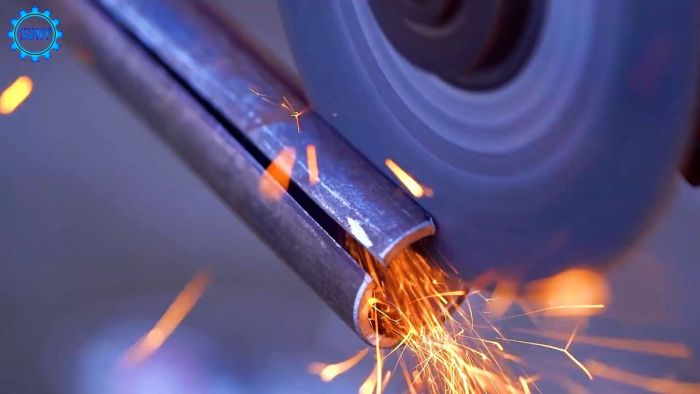 Из трубы необходимо сделать заготовку длиной 320 мм с вырезом шириной 20 мм и длиной 300 мм. Его стороны должны быть строго параллельными.