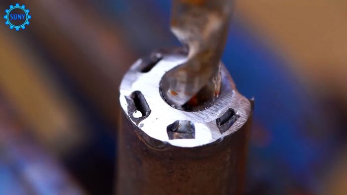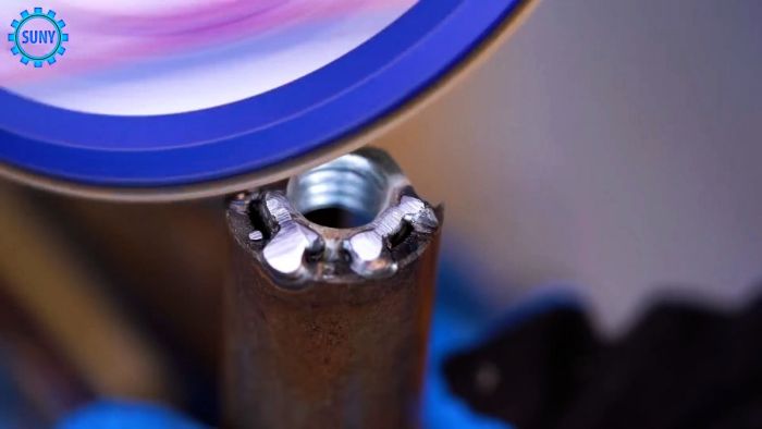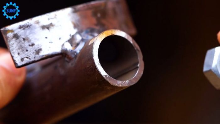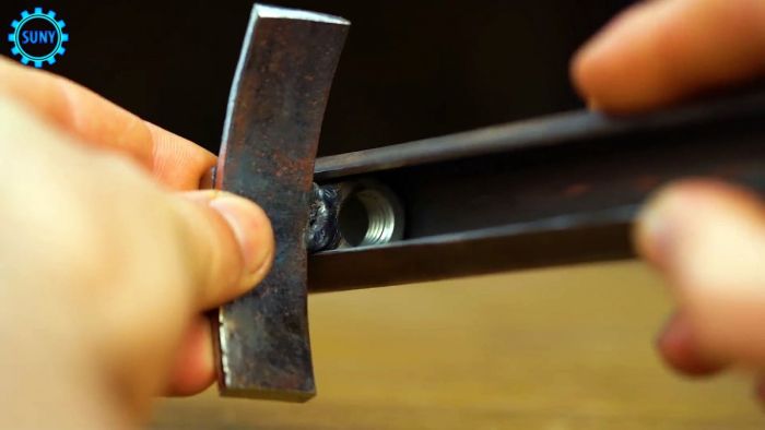 Второй упор нужно приварить к трубе в конце выреза. Затем первая губка с гайкой вставляется в трубку.