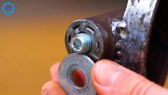 На выходе за неподвижной губкой к ней приваривается шайба.