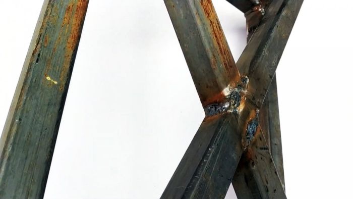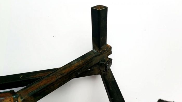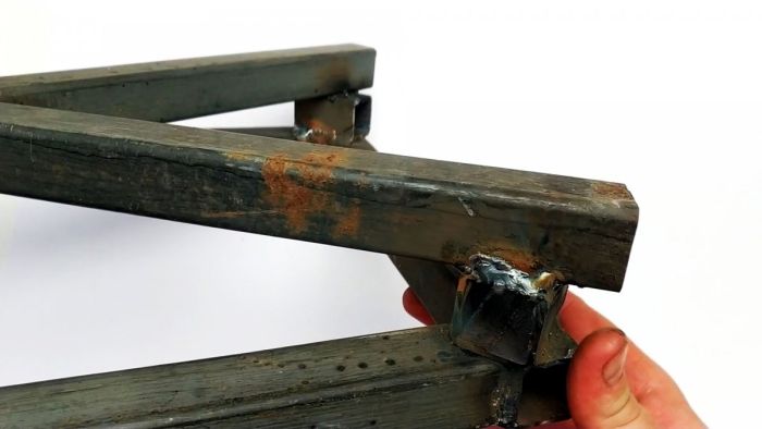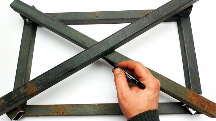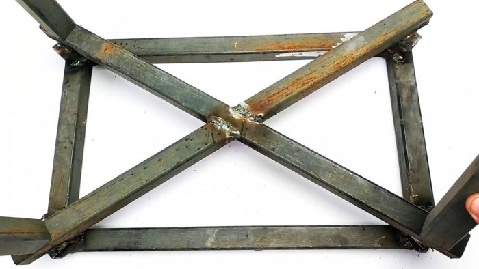 Затем П-образная деталь приваривается на пересечении диагоналей.