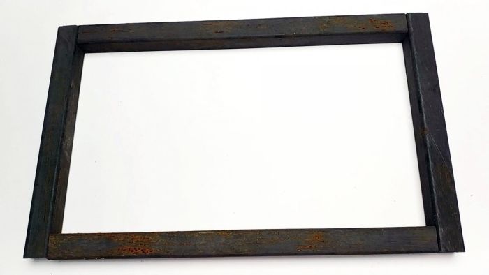 Из профильной трубы 30х30 мм нарезается 2 заготовки по 45 см и 2 по 31 см. Из них складывается рамка.