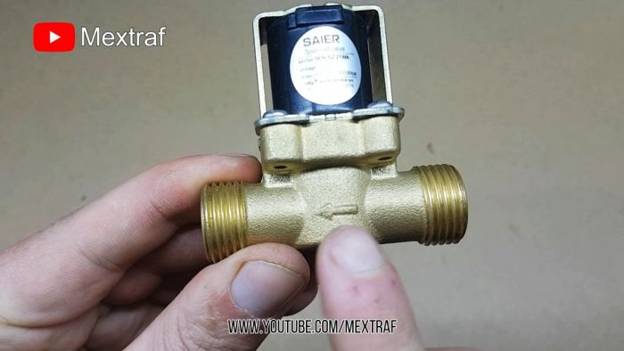 Клапан теперь можно включить в систему гибкими подводками. Обратите внимание, что на его корпусе есть стрелка, показывающая направление течения воды. При неправильном включении клапан работать не будет.
