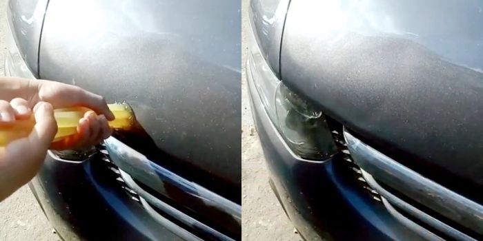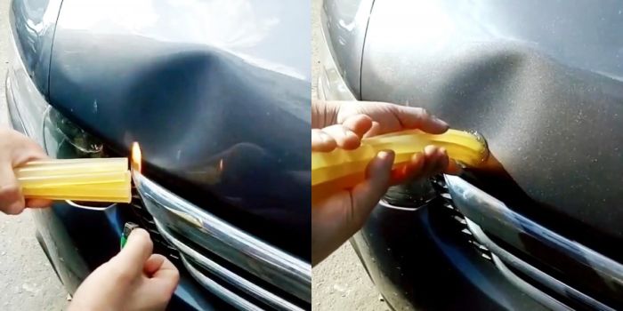 Многие вмятины на кузове автомобиля при условии отсутствия сколов краски можно вытянуть в домашних условиях без обращения в СТО. Для этого даже не нужно какое-нибудь специализированное оборудование и инструмент. Этот лайфхак поможет избавиться от вмятины за 2 минуты.