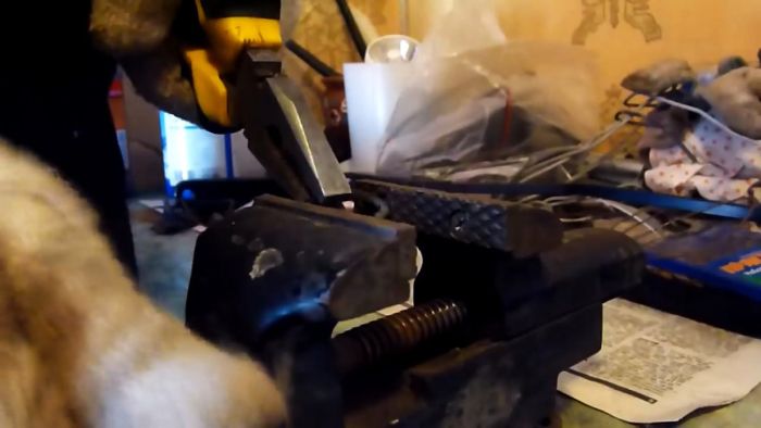 После демонтажа требуется сжать С-образную пружину. Это делается тисками.