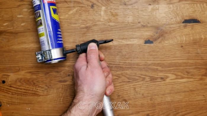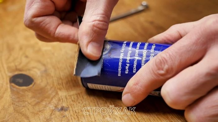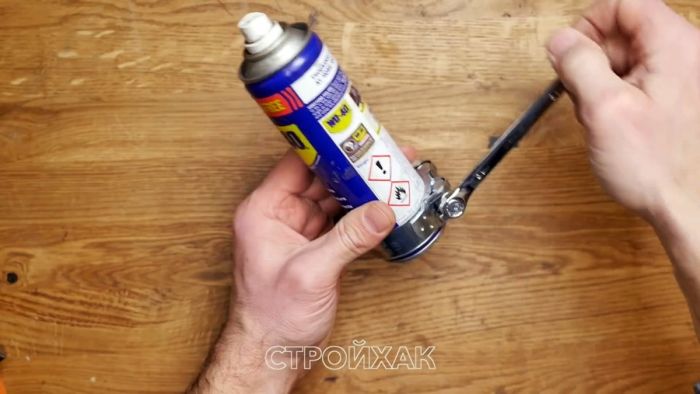 Первым делом нужно позаботиться о емкости для аэрозоля. Для этого потребуется переделать старый пустой баллон от WD-40.