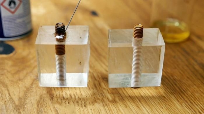 Получаем в результате готовую к применению проникающую жидкость, помогающую раскручивать приржавевшую резьбу, смазывать ее и вытеснять влагу.