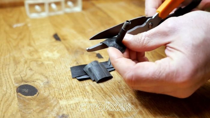 Необходимо вырезать из камеры ниппель, оставив вокруг него немного резины.