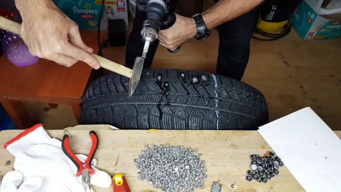 Если шипованная резина осталась без части шипов, то перед следующим сезоном их нужно восстановить. Для этого можно купить новые шипы и поставить их вместо утерянных. Все возможно проделать в домашних условиях.
