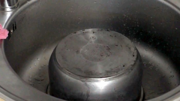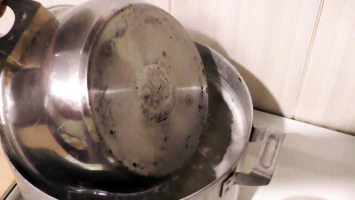 После этого кастрюля или сковорода будет блестеть как новая. Оставшийся раствор не теряет свойства, поэтому в нем можно прокипятить следующую партию грязной посуды.