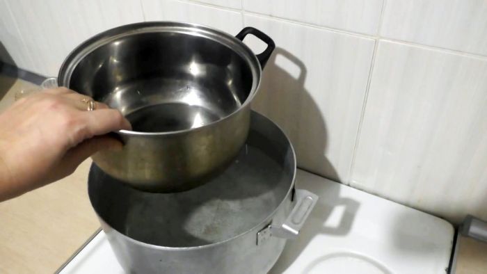 Перво наперво нужно найти емкость, в которую будет входить кастрюля или с сковорода которую нужно очистить.