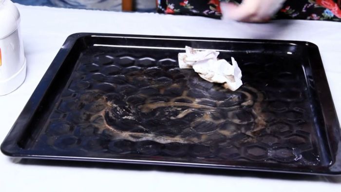 Нагар на противне и стенках духовки присыхает настолько, что его удаление занимает много времени и сил. При чистке воспользуйтесь предложенным советом, и все смоется быстро и легко.