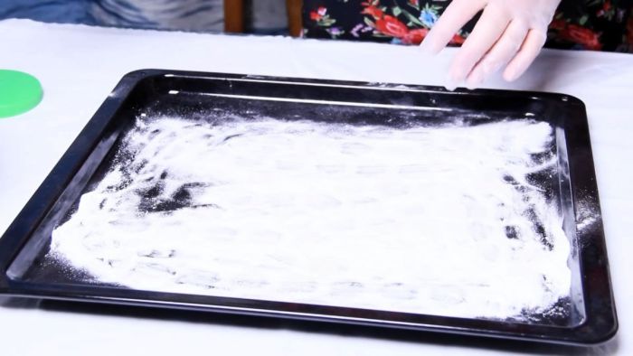 Затем противень протирается уксусом.