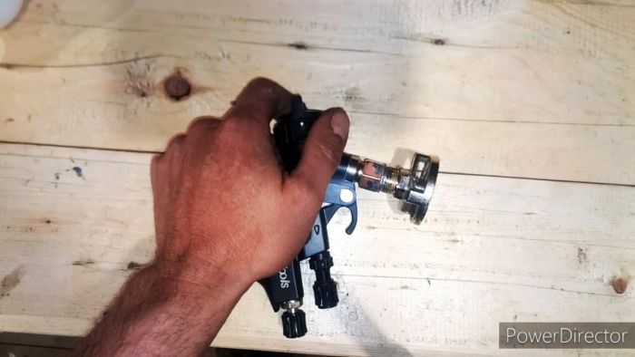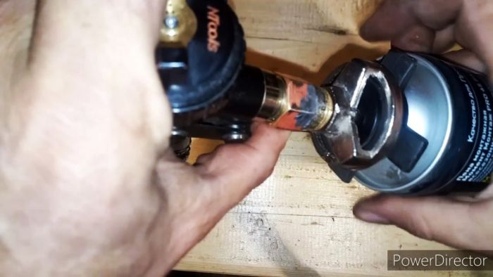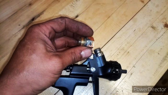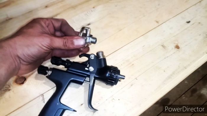Стоит задача поставить на краскопульт вместо бачка адаптер под монтажную пену из пистолета. Трудность заключается в том, что для этого нужен переходник. Проблема решается подбором двух резьба: под адаптер и краскопульт.