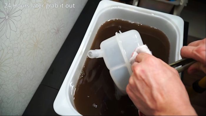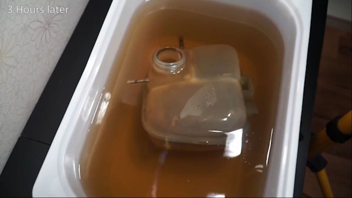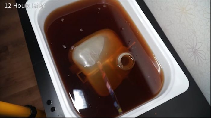 В зависимости от концентрации тот уберет всю желтизну за 12-24 часа, оставив идеально чистый белый пластик.