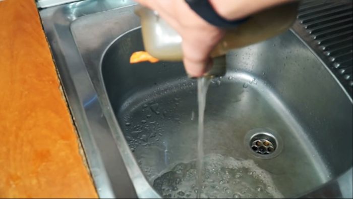 В него набирается немного воды с моющим средством, и он закрывается. Нужно поболтать бачок, чтобы растворить и вымыть накопленный внутри грязный осадок.