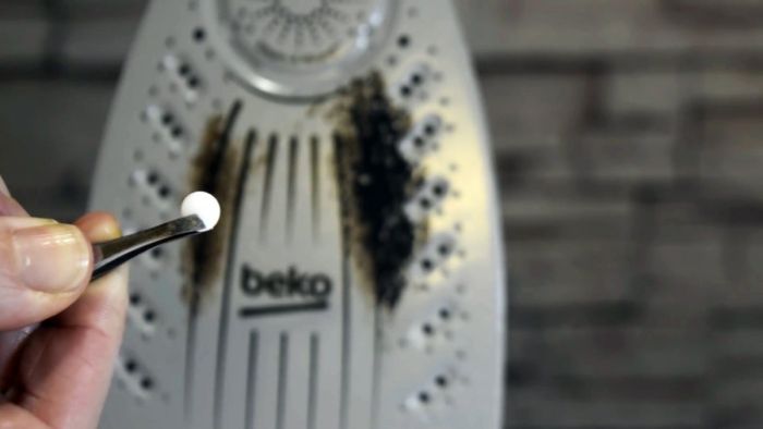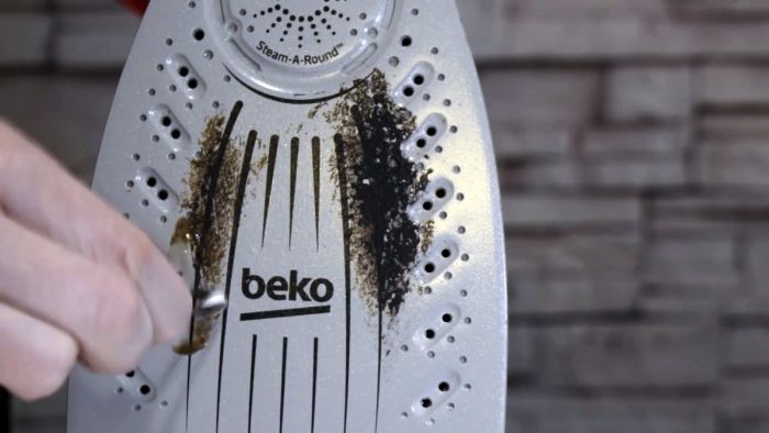 В результате за пару минут можно очистить весь нагар с подошвы утюга.