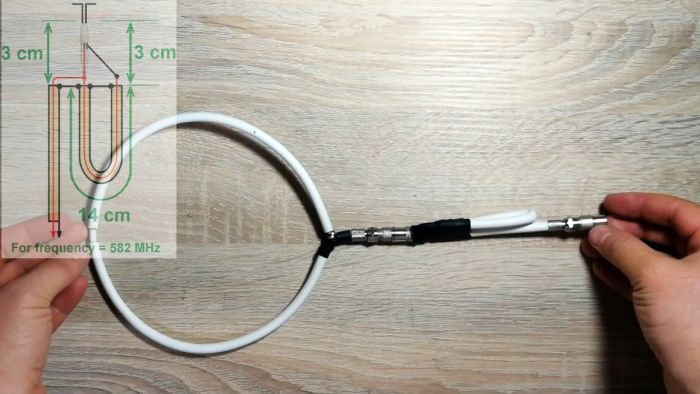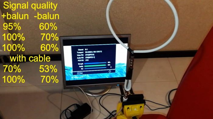 При использовании самодельной антенны DVB-T/T2 в виде закольцованного коаксиального кабеля, несмотря на ее большую чувствительность, качество сигнала может быть недостаточным. Для его усиления перед антенной устанавливается балун, изготовленный из этого же кабеля.